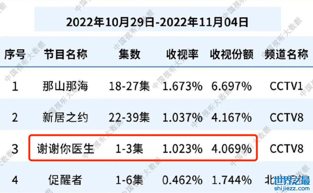 杨幂、白宇主演的《谢谢你医生》在央视电视剧频道播出,开播的收视刚刚破1,还不如二轮重播的《新居之约》。