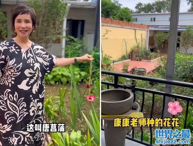 将院子里的花花草草都精心打理一番后,徐俐老师又开始为一片空地浇起了水,站在水泥边上神情认真专注。值得一提的是,我们也能从镜头视角中窥到徐俐老师院子一角,简单温馨,小巧精致,放着两张椅子闲暇时品茶阅读、赏花闲聊,日子好不惬意。