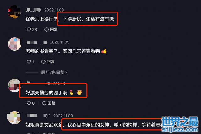 对于徐俐老师的分享,网友们也是纷纷称赞本人完全就是“女神”般的存在,上得了厅堂下得了厨房,文武双全思想通透,勤劳又有智慧,将日子过得有滋有味活色生香。