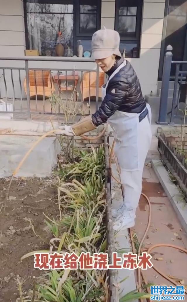 61岁央视徐俐院子里施肥!蹲地上用铲子挖羊粪,戴围裙松土太真实 ...