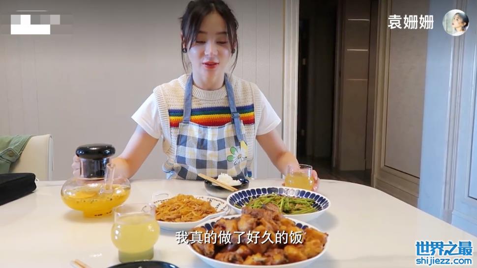 可以看到袁姗姗家中有两个灶台,她一边用来炖鸡,一边用来炒一些小菜,同时进行极大地节约了做菜时间。值得一提的是,袁姗姗的自我保护意识很强,端菜时还特意戴上胶手套以防烫伤。