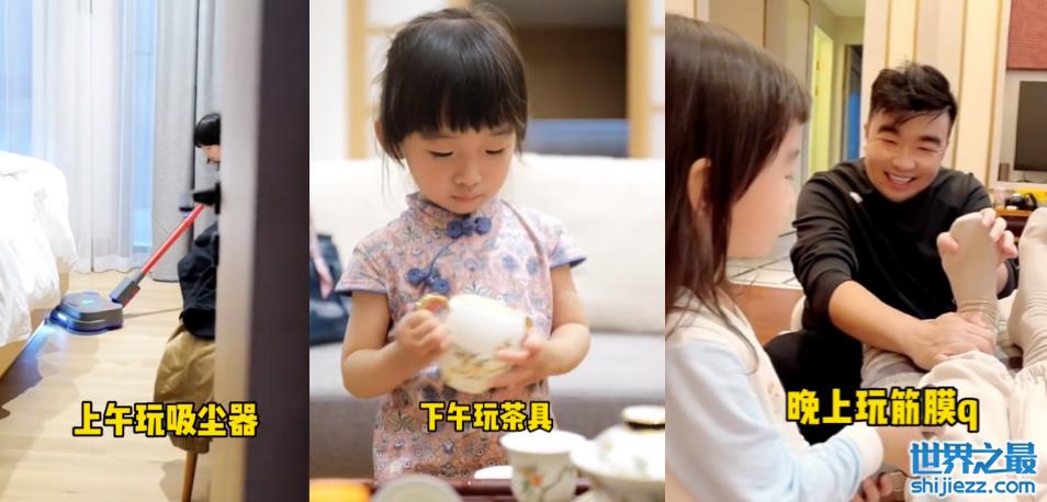 在这段视频里,何雯娜又幽默的方式说给女儿超可爱准备了很多“玩具”,比如吸尘器,茶具还有筋膜枪。实际上是让女儿自己动手做家务,不管她做的好不好,在另一方面也是锻炼了女儿的动手能力。