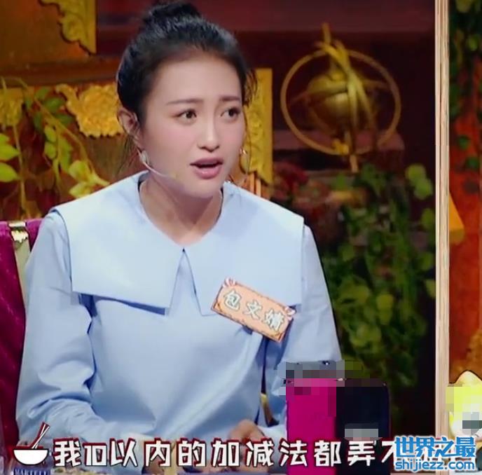 她曾经在节目中说自己算术差,主持人问她有多差,出了一个23+4等于几的小问题,她都一脸懵地说自己不知道,就连1+4都不会算,还说自己连10以内的加减法都弄不明白。