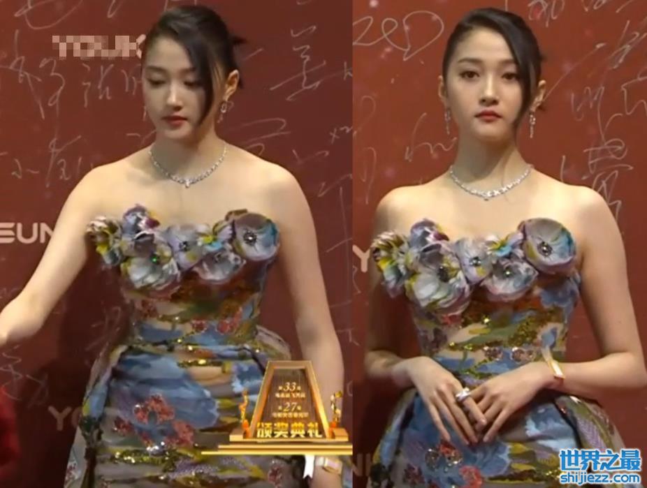 礼服太紧确实是非常尴尬的事情,关晓彤之前已经遇到过一次,这件抹胸连衣裙不知道是不是小了一号,把关晓彤勒出了一圈肉。