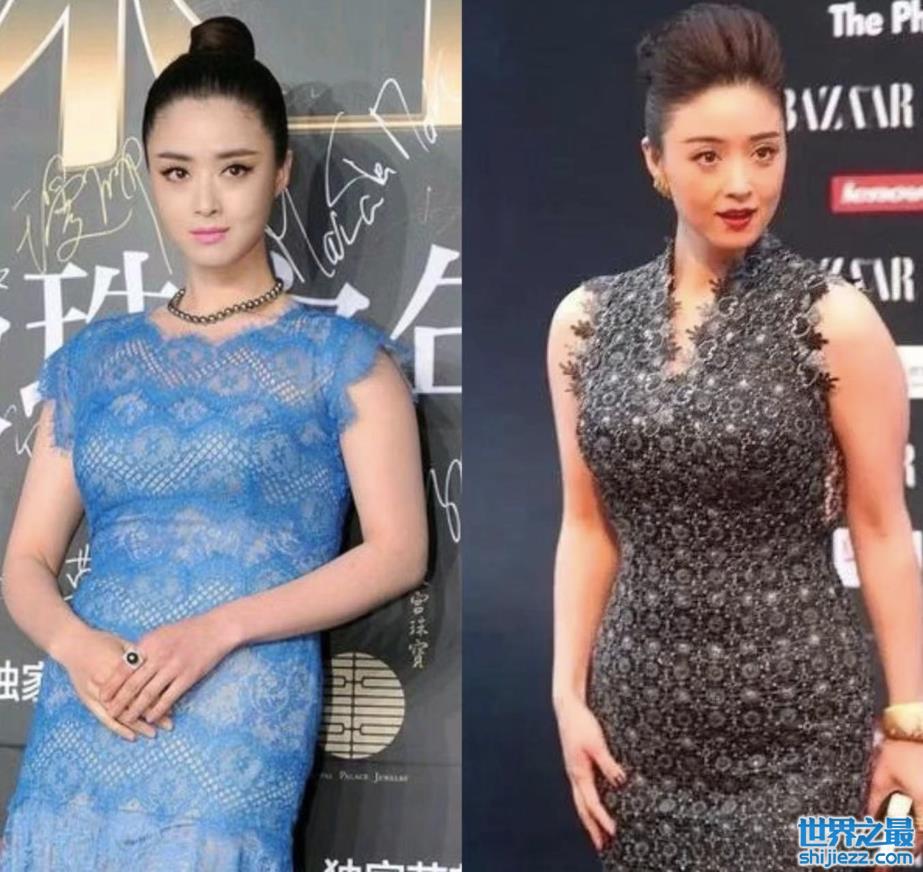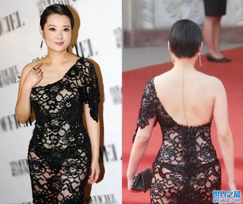 中年女星“更敢穿”,比如袁立早期在红毯上这套黑色蕾丝镂空装,至今仍是“经典”。虽然这条裙子确实性感大胆,但奈何袁立的身材丰腴,镂空的设计放大了袁立身材的“肉感”,反而显得臃肿了,背面看更是虎背熊腰,不忍直视。