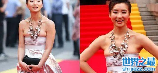 大美人陈好在红毯上也有过尴尬时刻,这条紧身的抹胸裙把她上半身勒出了一大圈肉,虽然有着夸张的项链修饰,但也掩盖不了画面“辣眼睛”。