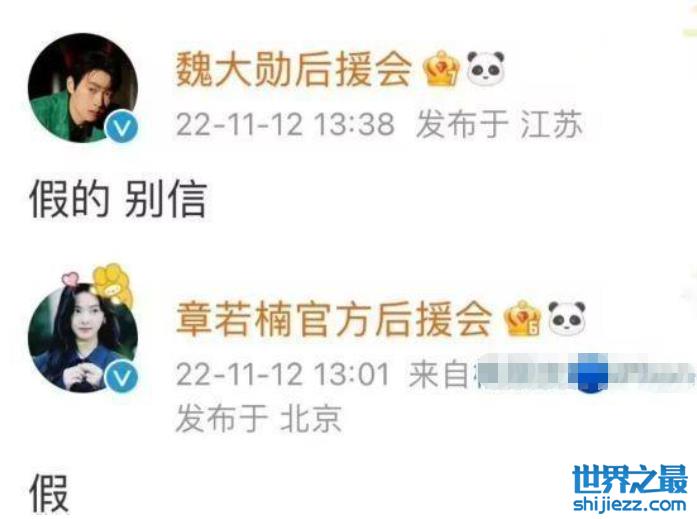 近日,突然有爆料说魏大勋和小花章若楠在一起,还说后续会发图,保证很甜。但最后还是没有出现实际性的照片等证据,看起来可信度并不高。