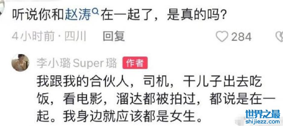 李小璐之前对绯闻都是采取不回应的态度,但这次她终于出来回应新恋情传闻了。根据最新消息,李小璐亲自回应网友,否认和赵昱涛交往,称对方只是自己的合伙人,司机,干儿子。还说自己身边应该都是女生,似乎言语有点激烈。