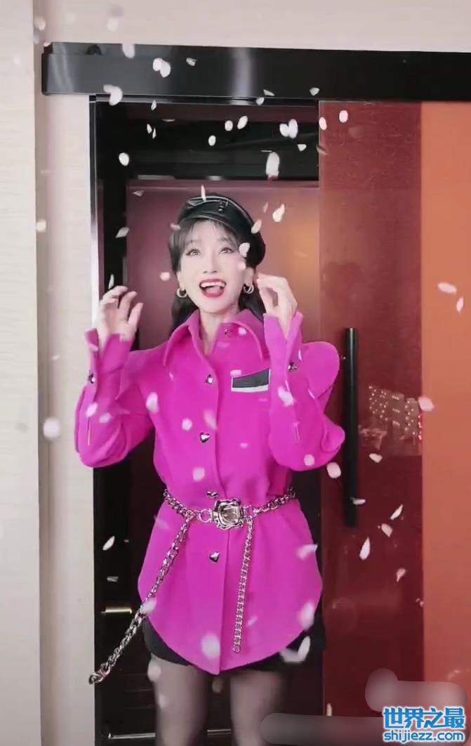 赵雅芝戴着时尚的帽子,穿着玫红色外套和超短裤,下面搭着黑色丝袜和靴子,整体造型十分复古减龄。