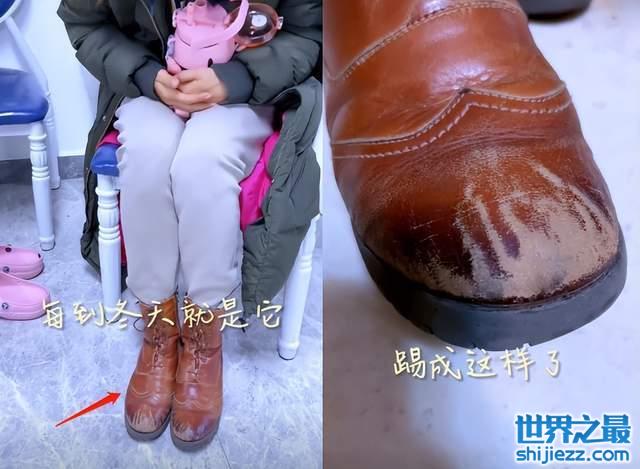 在视频的开头,朱迅向我们展现了她脚上的一双小皮鞋,当旁人问及“你怎么又在穿这双鞋”,周迅表示鞋子穿起来特别舒服,已经跟了自己十几年了。把镜头推近,我们还能看到鞋子的鞋头都已经被踢破,上面的皮子已经磨损掉了。