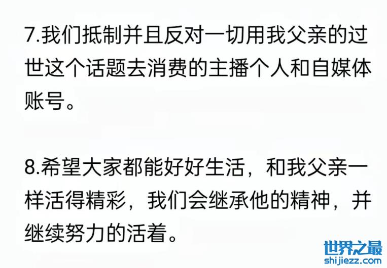 其次,陆维伦也宣称自己在七期之前不会更新视频,也不会参与直播,想来也是用这种方式深刻缅怀刚刚离世的父亲,希望广大网友可以给予其支持与理解。