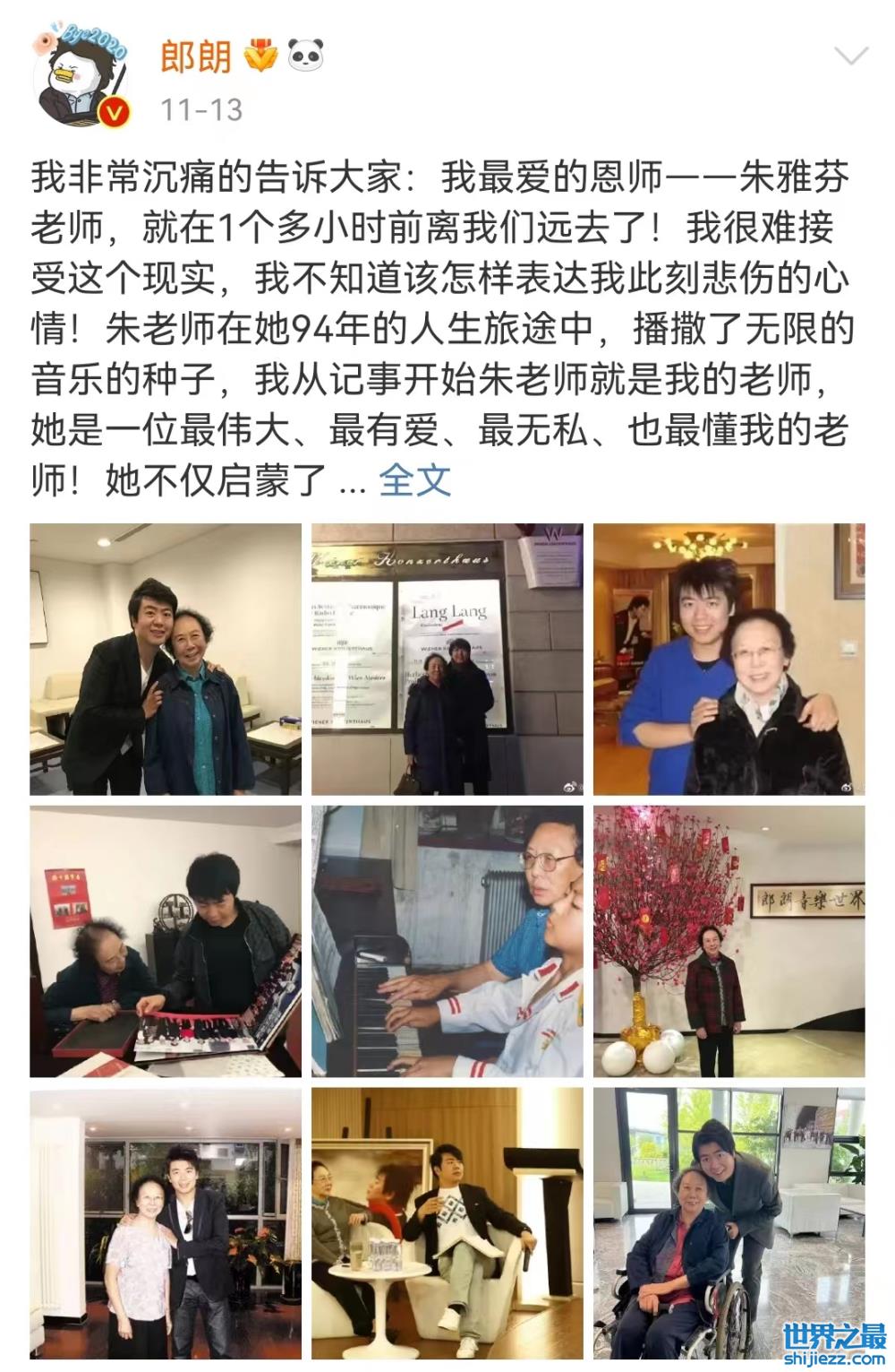 而最近几天也有许多的名人离开,11月13日郎朗发长文悼念自己的恩师朱雅芬老艺术家,称朱雅芬老师是最伟大、最有爱、最无私、最懂他的老师,能培养出郎朗这样优秀的钢琴家,朱雅芬老艺术家确实十分厉害。