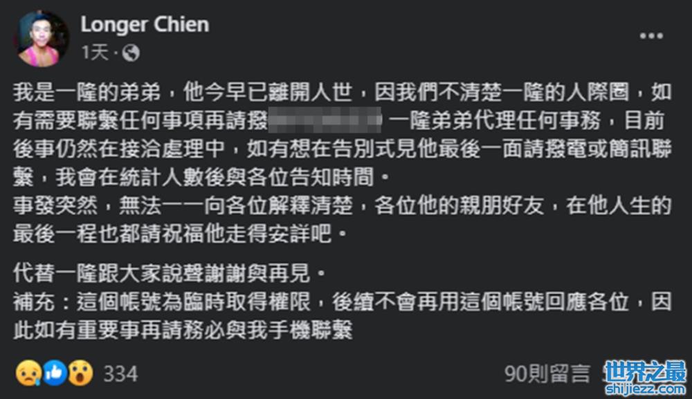 后来其胞弟又发文回应大家对简义隆的关心,称了解简义隆的朋友们应该都知道简义隆2年前发生过突发状况,上一次很幸运,但这一次就没有那么幸运,等到家人发现已经来不及了。侧面回应了简义隆离开的原因。
