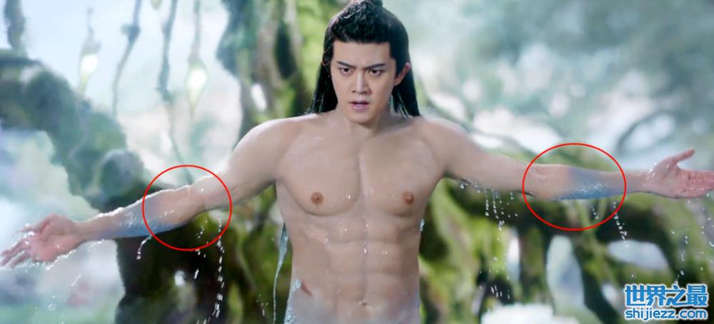 《驭鲛记》男主任嘉伦,他在剧里演鲛人,直接全身假肌肉上阵。穿上全套肌肉衣,他不用为角色锻炼增肌,也能一秒变型男。
