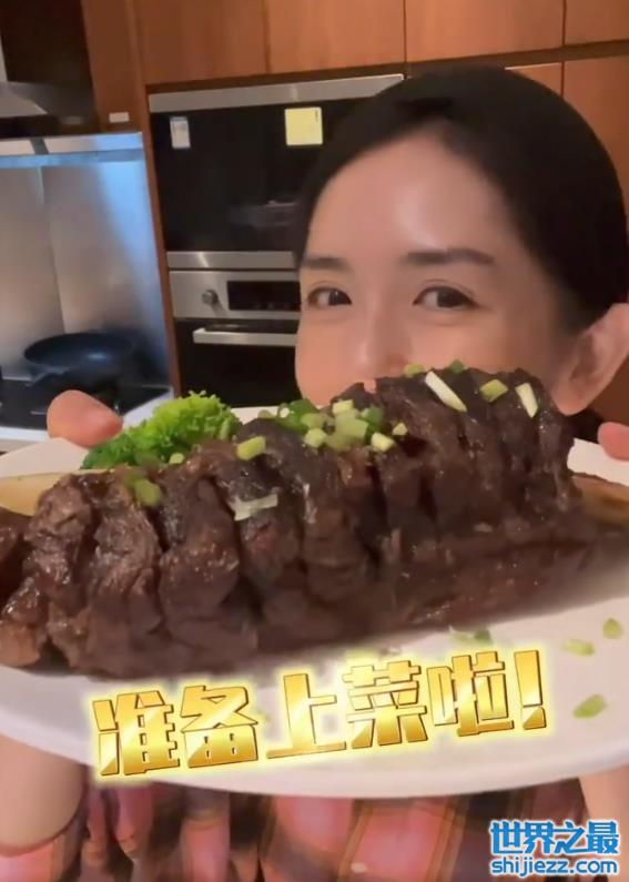 画面中,只见谢娜手捧着巨型的大牛排,一脸兴奋得跟大家展示,本身脸蛋就很小,因为皮肤状态极好的缘故,画面中完全看不出谢娜的真实年龄,只觉得她像是一个可爱的少女。