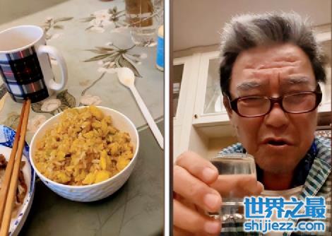 满满一桌子饭菜残渣,看来应该是吃得很开心满足,他还为大家兴致勃勃地介绍了桌上的汤。