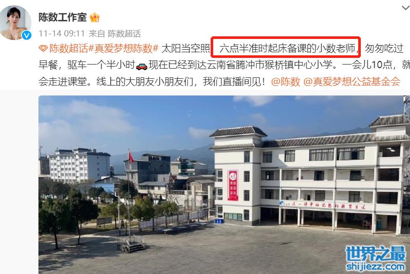 从陈数工作室的动态能了解到,陈数的支教日常其实并不轻松,很多时候她都需要六点钟起床备课,匆匆吃完早餐就开始参与教学活动。