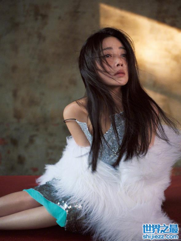 此次为殷桃所挑选的服装也不算夸张,羽毛外套配上亮片吊带裙,即便是穿去走红毯也算不上有多特别的打扮,不过当殷桃一脸清冷地侧卧在红色板子上,若有所思地望向远方时,这个造型似乎就已经被她驾驭出了最好的效果。