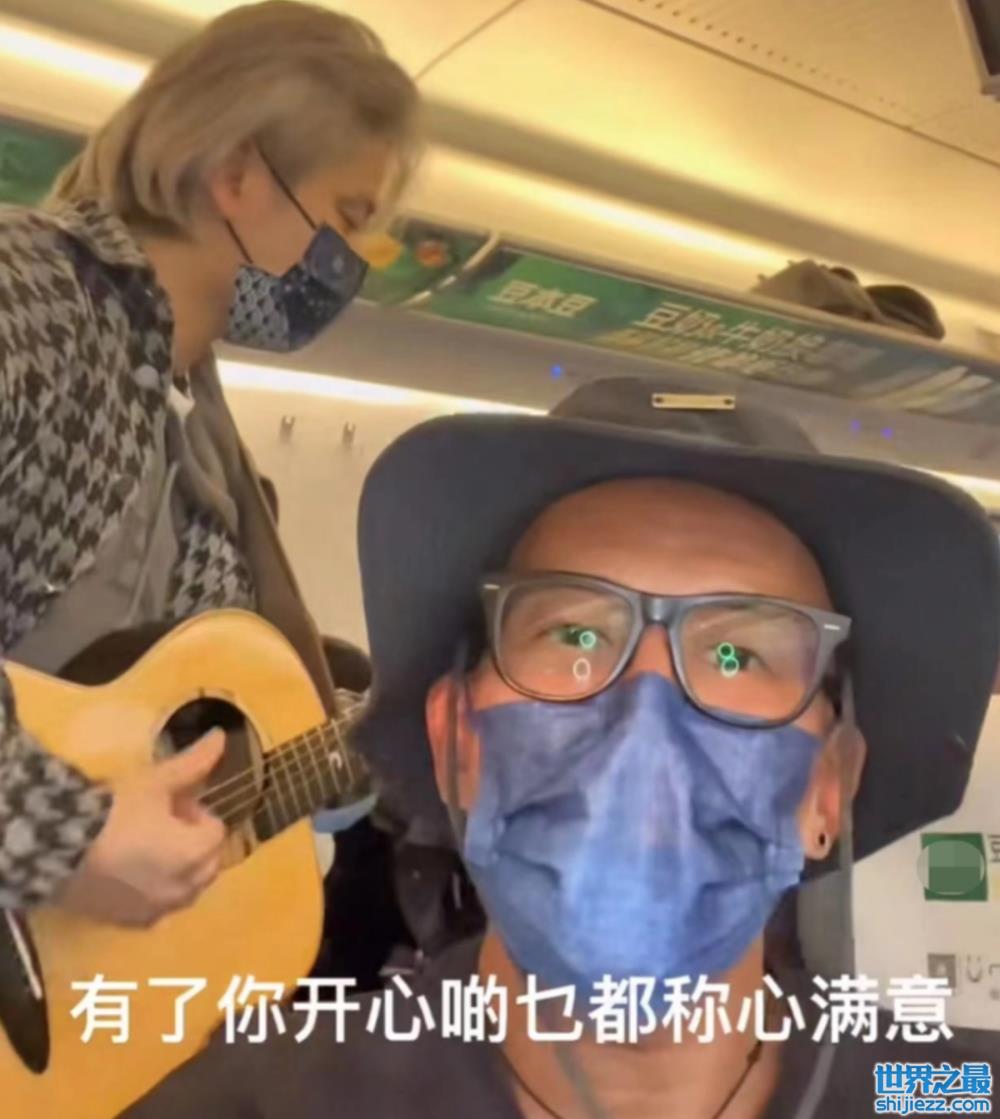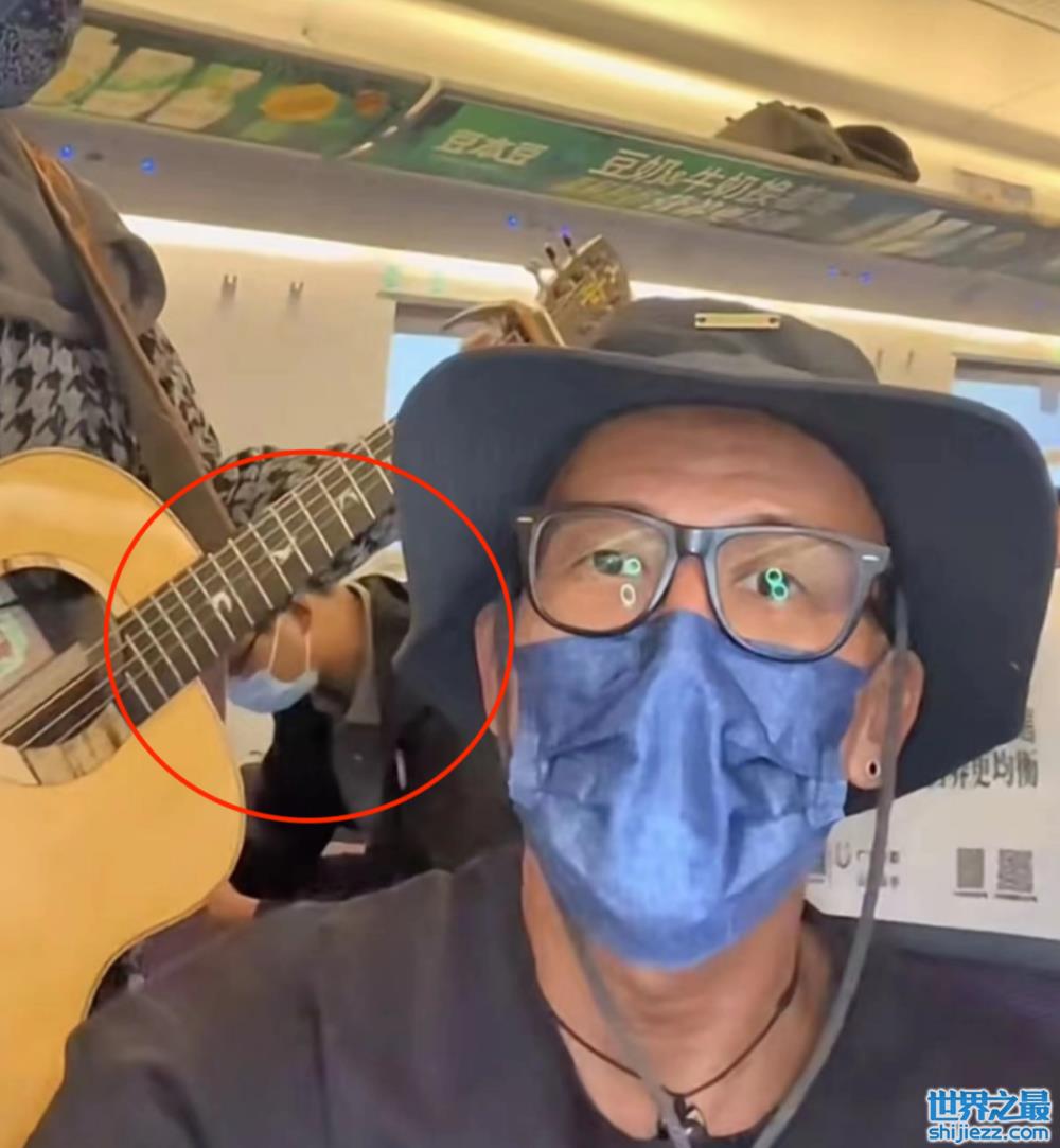 一般人坐高铁,都希望安静,但他们三人却在座位上大声唱歌,张彦博甚至还拿着吉他进行弹唱。周围没有任何乘客捧场、喝彩,估计心里还在吐槽:这三个人怎么这么吵。