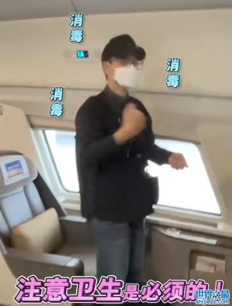 刘德华坐的当然是一等座,上车后他就拿着酒精对自己狂喷,进行全身消毒,安全意识拉满。