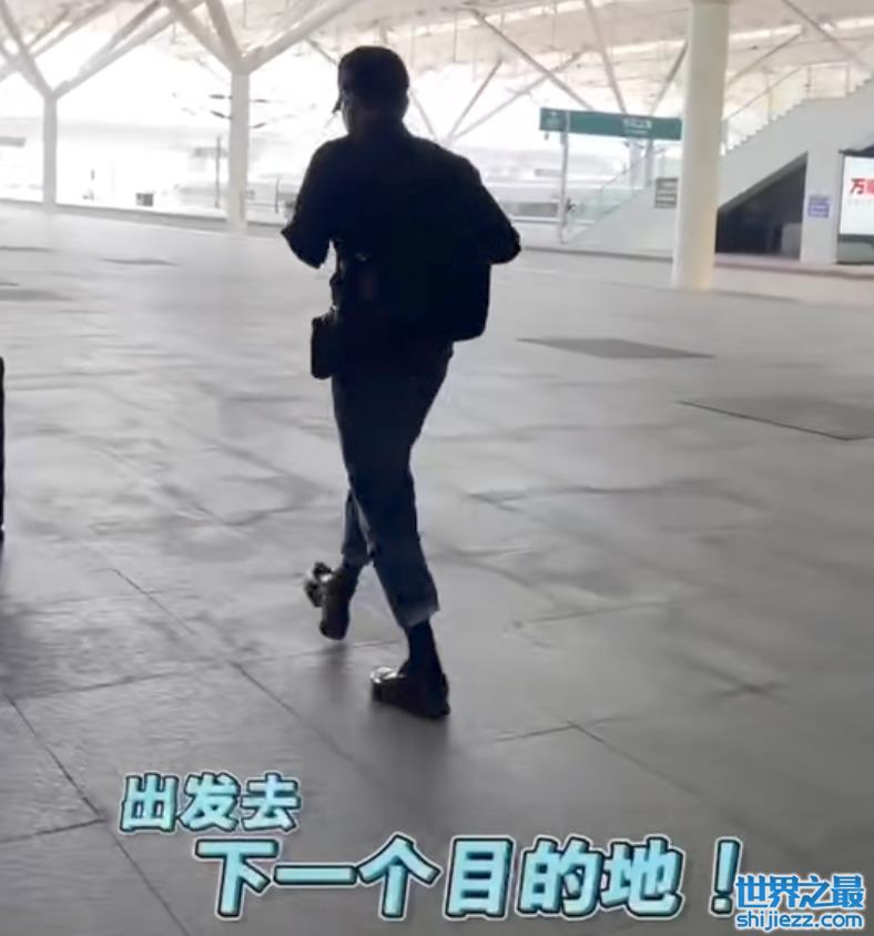 他全程佩戴口罩,并且一直戴着耳机,行进到一半,他兴奋自拍。