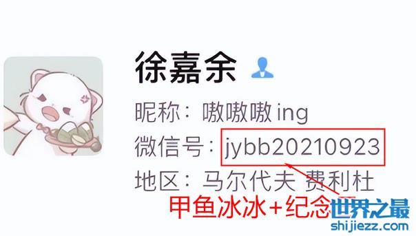 在与土土分手的第二天,徐嘉余就将自己的微信号改成了特定日期,暗戳戳展示他与王冰冰的纪念日。