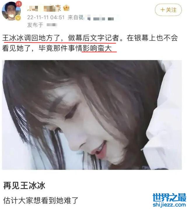 恋爱事件的发生,使得王冰冰不得不按下了事业的暂停键。她许久未露面,