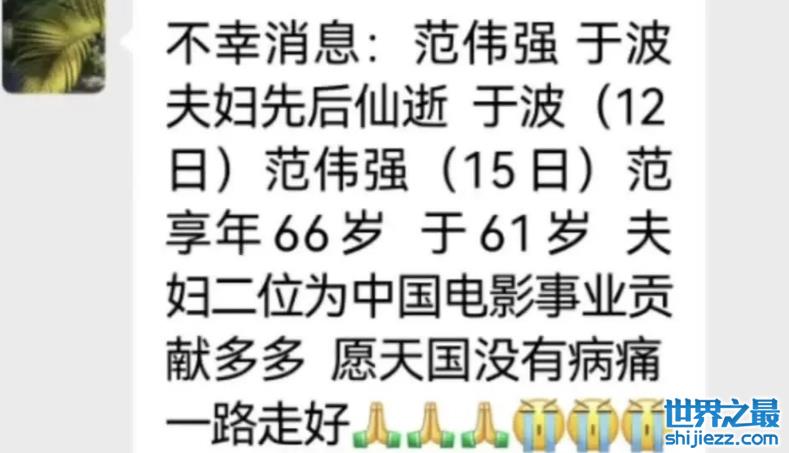 更加悲痛的是,在11月12日,范伟强的妻子于波也因病医治无效离开了,享年61岁,两人先后离去,愿夫妻二人一路同行,来生再续前缘。