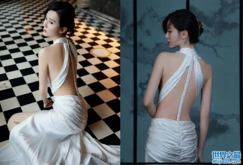 这条白色长裙更是相当性感,背部是大露背的设计,露肤面积超大,都快到臀部了,但从侧面照就能看出,乔欣的胸前是没有任何起伏的。
