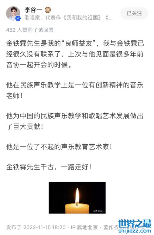 毕竟两人除了曾经是夫妻外,李谷一也是金铁霖的学生,此前她两次公开缅怀,也足以看出在李谷一的心中,对金铁霖非常感激,赞他是一位了不起的声乐教育艺术家,希望他一路走好。