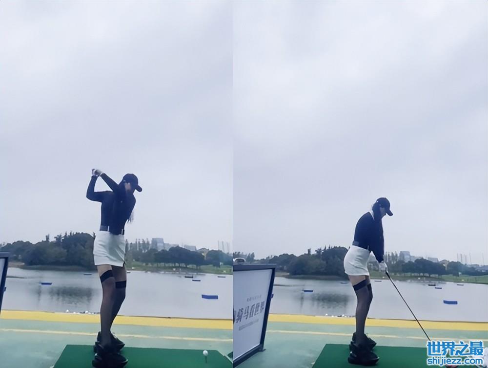 此次打高尔夫的场地并不是草地上,而是在江边。冉莹颖显然对于这项运动也是驾轻就熟,挥杆动作干脆利落,非常专业。与此同时可以见到她的一双比例惊人的长腿看起来就像是筷子一般,在黑丝的衬托之下,美腿纤细又不干瘦,让人很难不羡慕。