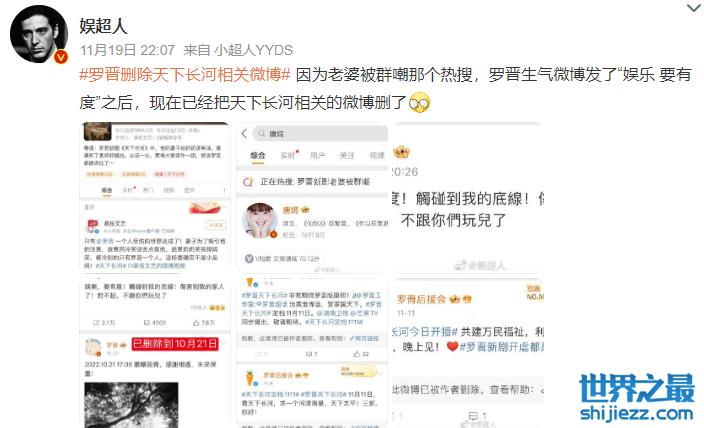 罗晋在11月19日晚,已将微博中有关《天下长河》的所有相关动态全部删除,看来罗晋还在气头上,这是要和剧方闹掰的节奏吗?