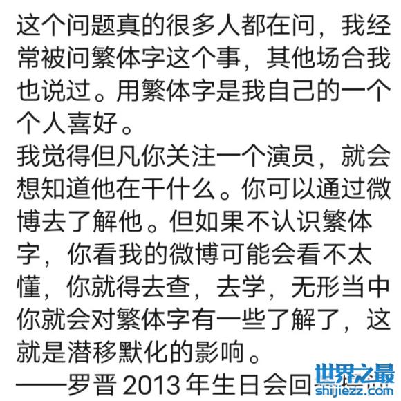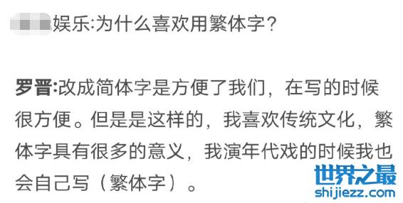 另外,罗晋在13年的时候就说过,用繁体字也是自己的个人喜好,他平时也爱练书法。