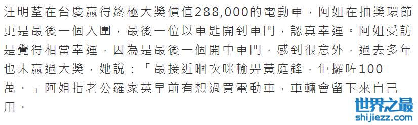 75岁汪明荃穿露背装现身!现场中奖赢26万豪车,一脸兴奋钻进车里 ...