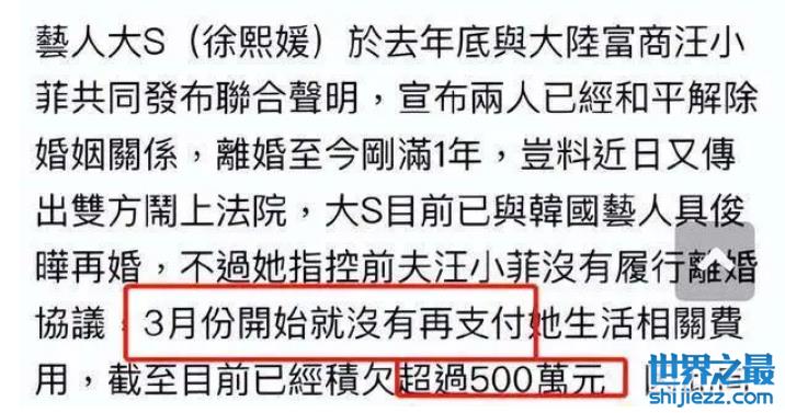 11月21日,台媒爆料大S将前夫汪小菲告上法庭,指责他从3月起就拖欠生活费,至今已经欠了超过500万台币,引起了诸多网友热议。