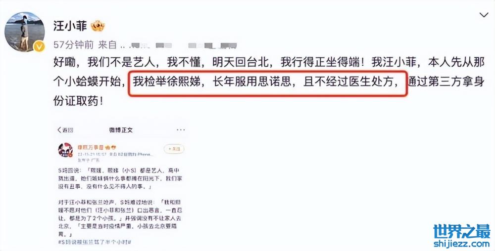不仅如此,汪小菲还连续发文多条来揭露徐家的恶心事,还表示徐家人就是该骂。汪小菲揭露的事情主要有三点,几乎都和曾经的小姨子小S相关。他首先爆料小S徐熙娣长年服用思诺思(安眠药),且不经过医生处方,通过第三方拿身份证取药。