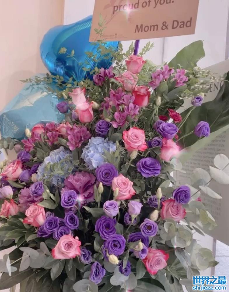 还有人拍到了张学友和妻子为女儿准备的巨大花篮,上面还写上了“proud of you”的字样。家中有一位如此才华横溢的孩子,父母怎么会不感到骄傲呢?