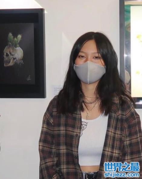 张瑶萱和陈竹君共同创作了一幅骷髅画,看上起十分有个性,两人还一起在画作前合照留影。