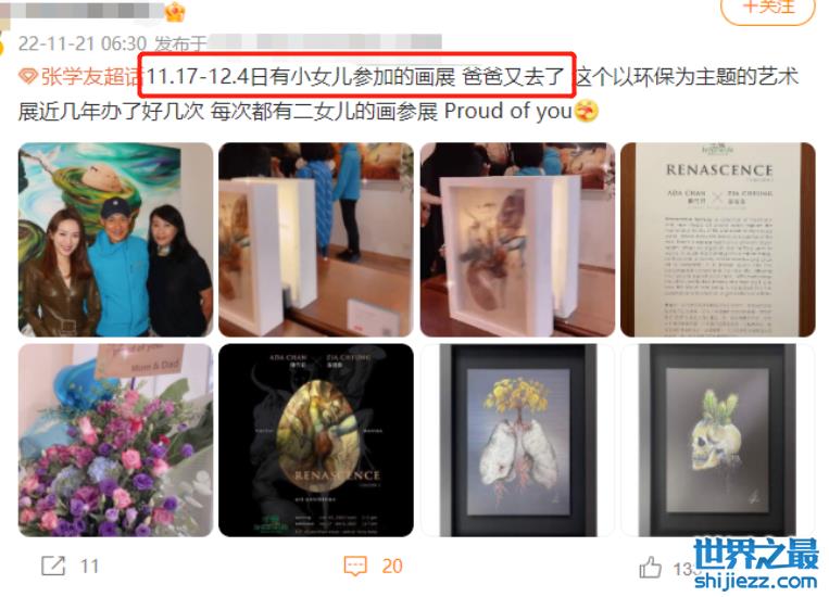 张家父女一起出席活动,是为了庆祝女儿与艺术家陈竹君的合作品被收入展览,看着“张瑶萱”三个大字出现在展牌上,张学友的心里应该也很欣慰吧。