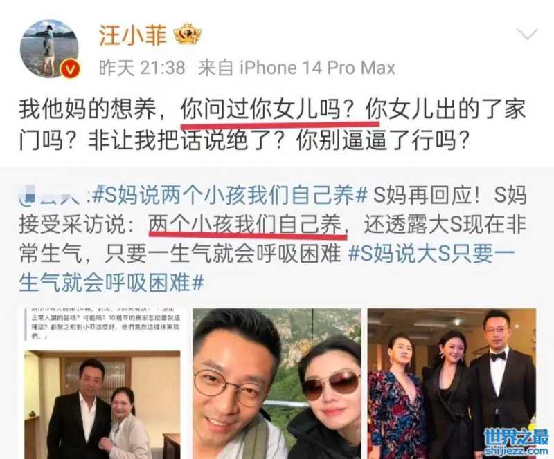 汪小菲发文爆6大猛料:小S服药、老公养小三、大S是假体面人 ...