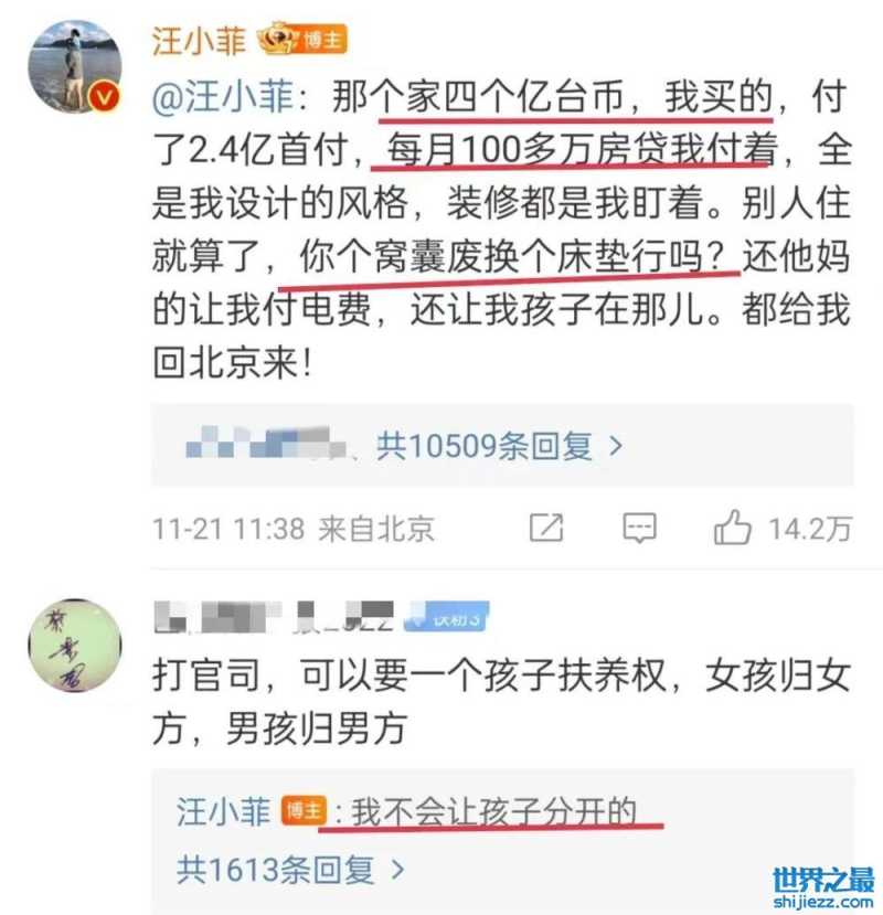 随后,汪小菲在评论区留言,称那个家4个亿台币,是他买的,每个月100多万的房贷也是他付。怒骂具俊晔是窝囊废,不换床垫。有网友看不下去,建议他打官司,和大S一人抚养一个孩子,汪小菲却表示不会让孩子分开。