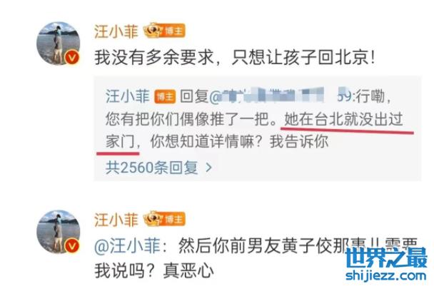 然后,汪小菲在评论区表示,他没有多余要求,只想让孩子回北京。怒气未消的他,还把小S的前男友黄子佼提了出来,嘲讽小S恶心。
