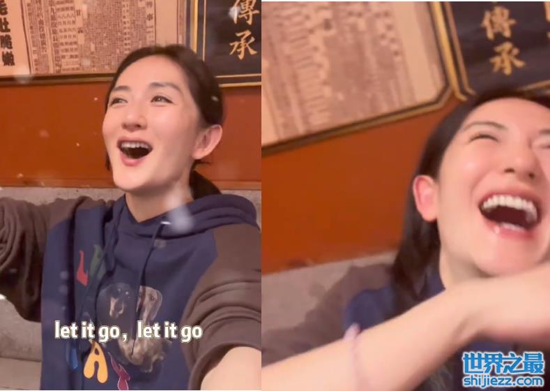 在品尝了火锅的热辣滋味之后,谢娜又开始狂炫甜品,吃了一口绿豆雪花冰之后,她表示自己仿佛置身于冰雪世界之中,兴奋地唱起歌来。她那夸张的肢体动作伴随着奇异的歌声,也给身边一同吃饭的朋友带来不少欢乐。面对镜头,谢娜笑得肆无忌惮,露出一口大白牙。
