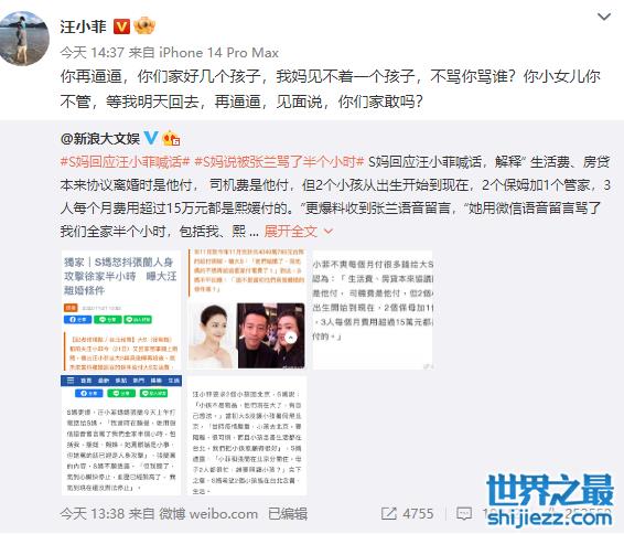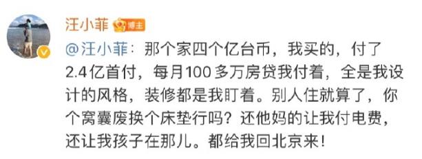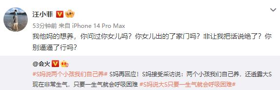 汪小菲发了一通疯,S妈出来回应了,说生活费和房贷本来就是离婚协议里约定好的。