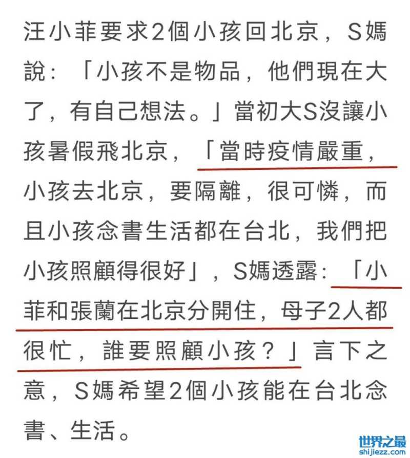 汪小菲要求孩子回北京,S妈则称当时北京疫情严重,孩子去了要隔离,太可怜,而且我们把小孩照顾得很好。