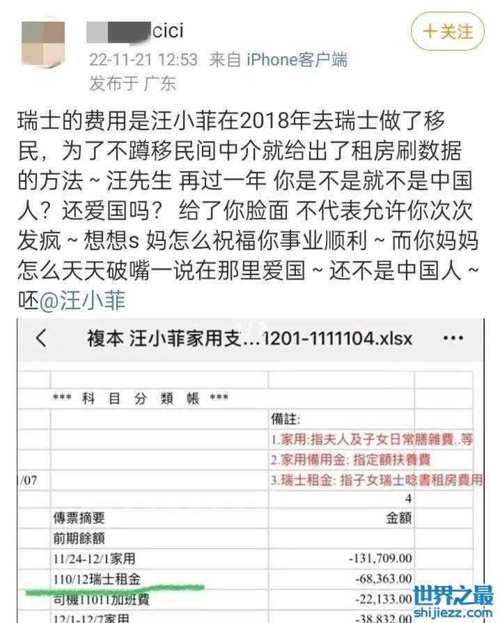不过有网友发现了华点,指出汪少菲支出表里的“瑞士租金”是为了移民。而此前汪小菲因为爱国人设还被咱们不少大陆人支持过,结果竟然是两面派?