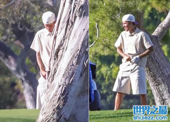 不过比伯似乎一直与裤子不太过得去,之前在高尔夫球场时,比伯就曾在中场休息期间跑到树下面小便,即便是在如此空旷的场地,他也毫不在意,拉开裤子拉链进行方便。在方便之后,比伯还与路过的工作人员打招呼,看上去心情大好,简直可以入选迷惑行为大赏。