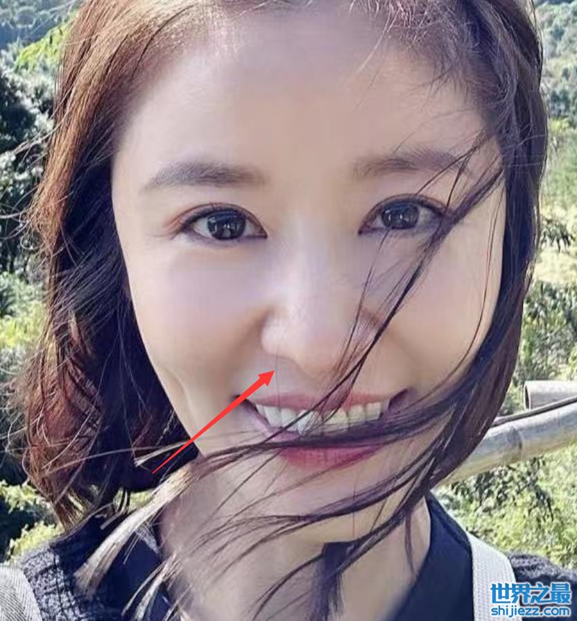 当镜头拉近时,林心如的鼻子就更吸睛,拔地而起的山根真的显得尤为突兀,脸上的皱纹也都完全遮掩不住,和滤镜下的美照完全像两个人。