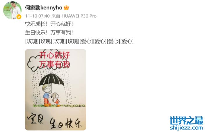 不过前几天,他有公开晒出一副画,画面中是一个男子为一个小小的女孩撑伞,配文是“宝贝,生日快乐”,似乎是在为自己的孩子庆祝生日,网友们这才恍然大悟,原来何家劲已经有女儿了呀!