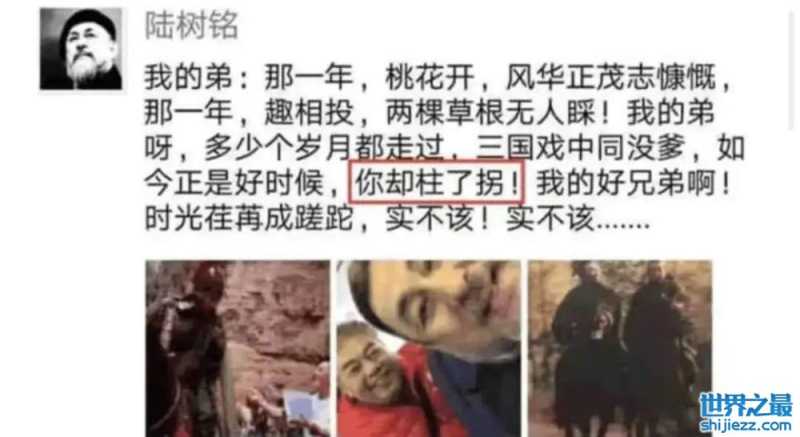 李靖飞老师生病后,陆树铭老师也会经常去看李靖飞老师,晒出两人的合照以及当年的剧照。文字中对李靖飞老师的现状充满了悲痛:如今正是好时候,你却拄了拐。